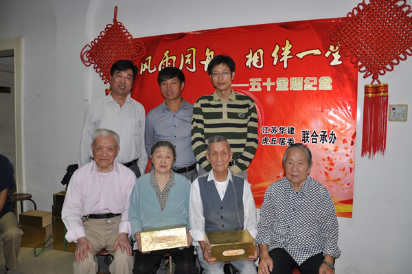 公司與居會委聯合舉辦“五十金婚紀念”活動 時間:2013-10-12 6126 10月12日,中國傳統節日“重陽節”前夕,上海分公司與承建的洛克外灘源項目所在地的虎丘居委會聯合舉辦“五十金婚紀念”活動,大力弘揚中華民族尊老愛老的優良傳統美德,也是公司與地方政府開展聯建共建活動的重要成果。上海分公司總經理助理、工會副主席陳德權還代表公司向居委會轄區內60對金婚夫婦贈送了由江西景德鎮特制的象征“幸福”、“長壽”的茶杯。