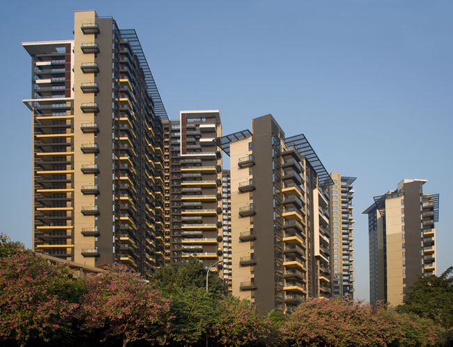 香山里花園一期位于深圳市南山區(qū)華僑城,由深圳華僑城房地產(chǎn)有限公司投資開(kāi)發(fā)。工程總建筑面積為153248.95m2,由2棟17層塔樓、5棟32層住宅塔樓及2層地下室組成,地下室-2層局部為人防地下室,其余為地下車庫(kù)和設(shè)備用房等;首層為商業(yè)用房及物業(yè)管理用房,2層以上為住宅;17層塔樓建筑總高度為59.2m,32層塔樓建筑總高度為99.95m。