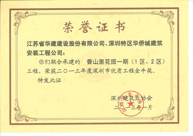 該工程于2009年3月10日開(kāi)工, 2010年4月18日同時(shí)通過(guò)竣工驗(yàn)收。工程先后榮獲2010年度廣東省建筑業(yè)新技術(shù)應(yīng)用示范工程、2011年度深圳市優(yōu)質(zhì)結(jié)構(gòu)工程、2013年度深圳市優(yōu)、“金牛獎(jiǎng)”。2013年12月,該工程被國(guó)家工程建設(shè)質(zhì)量獎(jiǎng)審定委員會(huì)評(píng)為國(guó)家優(yōu)質(zhì)工程。