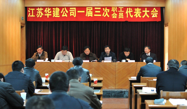 2月23日,公司一屆三次職工代表大會在總部會議室召開。大會聽取和審議了總經理宗有農所作的《行政工作報告》、工會主席徐仁國所作的《工會委員會工作報告》、以及工會經費審查委員會主任李長棟所作的《2009年工會經費審查委員會工作報告》,并對工會主席、副主席和工會職工之家建設情況進行評議,會議還審議通過了《江蘇華建集體合同》、《江蘇華建工資協商專項集體合同》、《江蘇華建女職工權益保護專項集體合同》等三個合同。