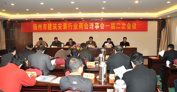 11月30日,揚州建筑安裝行業商會理事會一屆二次在揚召開,全市34家理事單位參加會議。市人大副主任、工商聯主席、總商會會長孫永如,市政協副主席朱正海,市工商聯黨組書記、總商會副會長趙振東,市建工局副局長成自勇等領導出席會議。