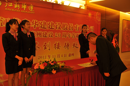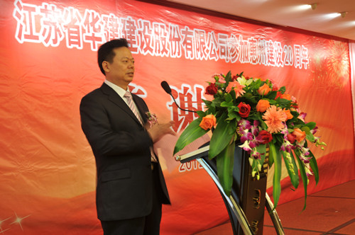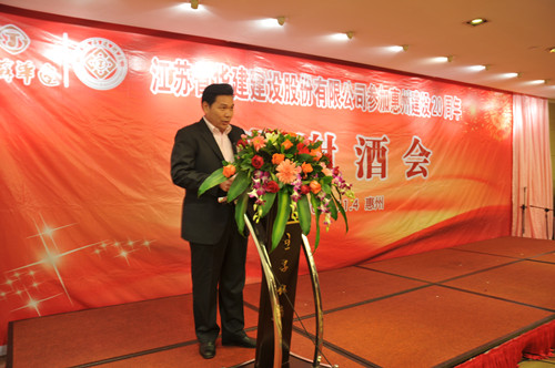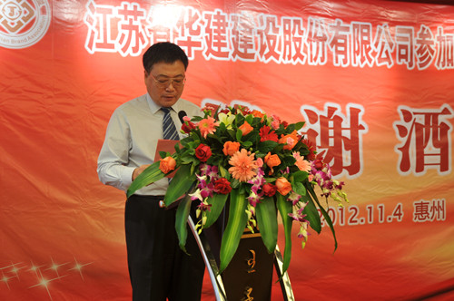 11月4日,公司在惠州隆重舉辦參加惠州建設20周年答謝酒會,副董事長、總經理宗有農主持并作開場致辭。惠州市有關政府部門、部分合作方企業(yè)的負責人,華建聯盟成員單位負責人,公司董事、監(jiān)事和高管等130余人出席酒會。惠州公司總經理華恒榮介紹了公司參加惠州建設二十年的有關情況。惠州市工商聯主席、恒宇實業(yè)發(fā)展公司董事長楊滿芳代表合作方發(fā)言,惠州市住房和城鄉(xiāng)規(guī)劃建設局副局長陳訓政代表政府主管部門致辭,分別對江蘇華建進惠施工二十周年表示祝賀。公司董事長陸金龍代表總部對惠州市有關政府部門、相關合作方和社會各界人士給予公司的關心和支持表示誠摯的感謝,并表達了進一步加大支持力度、加強戰(zhàn)略合作、加快科學發(fā)展的意愿。