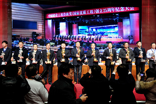 12月21日下午,中國建設工程“魯班獎”創立25周年紀念大會在北京會議中心召開,會議表彰了一批對創建魯班獎有突出貢獻的建筑企業。我公司以16項“魯班獎”的突出貢獻位列全國第五,喜獲“魯班獎突出貢獻獎金獎”,全國僅有17家建筑企業獲此殊榮,江蘇也僅有兩家企業上榜。公司總經理宗有農親自赴京領獎。