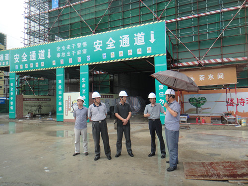 7月26日下午,陸金龍董事長專程來到中山市建筑業交易中心為中山分公司辦理企業法人代表備案手續。備案手續辦結后,陸金龍董事長和監事會主席吳士茂等同志顧不上休息,冒著近40度的高溫專程來到中山分公司百匯廣場項目部,深入施工一線和職工生活區,查看了一線施工情況,看望并慰問了施工一線人員。陸董事長要求珠海區域公司和一線項目部管理人員要認真做好高溫條件下的防暑降溫工作,既要搶抓工期和施工質量,又要確保一線施工人員的職業健康安全,要合理安排作息時間,避開高溫時間施工,做好各項防暑降溫工作。陸董事長等領導在百忙之中冒著高溫親臨一線工地慰問,廣大一線施工人員為此深受鼓舞,紛紛表示將繼續發揚江蘇華建人吃苦耐勞、樂于奉獻的優良傳統,認真做好本職工作,為社會鑄造更多更好的精品工程。