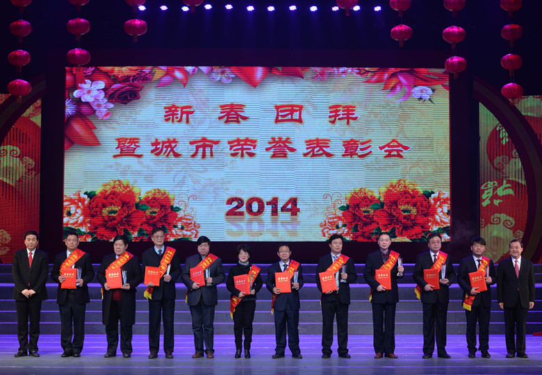 在1月12日晚?yè)P(yáng)州市委、市政府召開(kāi)的2014新春團(tuán)拜暨城市榮譽(yù)表彰會(huì)上,公司副董事長(zhǎng)、總經(jīng)理宗有農(nóng)當(dāng)選為“揚(yáng)州市十大功臣”,揚(yáng)州市委書(shū)記謝正義親自為宗有農(nóng)總經(jīng)理頒獎(jiǎng)。