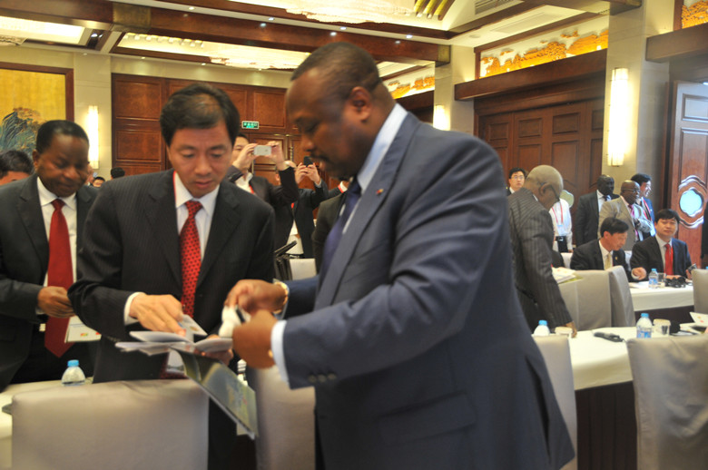 朱民陽市長在會上介紹了揚州經濟和社會發展的基本情況,薩蘇總統及其政府相關官員介紹了剛果(布)的發展形勢和未來規劃,并熱忱歡迎揚州企業家赴剛果(布)投資和參與全方位的經濟建設。剛果(布)的經濟開發區建設藍圖為國外建筑企業參與投資、建設和運營提供了契機,陸董事長在會議結束后與剛果(布)經濟、財政、計劃、國庫和一體化國務部長吉爾貝·