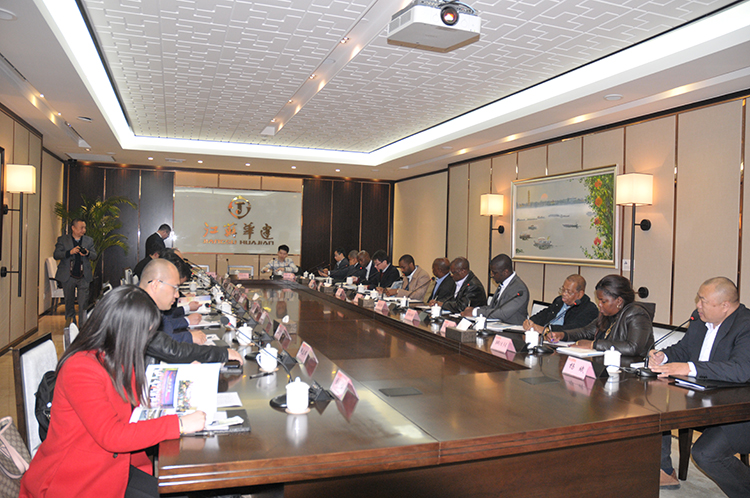 3月26日下午,以BPC-ABC聯合體戰略投資規劃副總裁若澤?奧利維拉?迪奧戈為團長的非洲安哥拉共和國經貿代表團,在海山國際控股和江蘇艾物潤公司負責人的陪同下,到江蘇華建考察訪問,江蘇華建副董事長、副總經理陳榮春,工程部經理丁華以及華建聯盟成員單位中機環建集團董事長巫金林、副總經理陳建宏等接待客人一行,揚州市商務局副局長陳建參加活動。