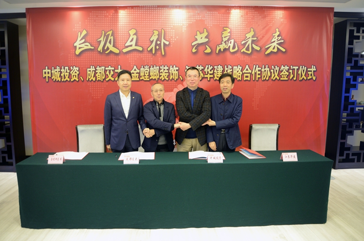 中城投資是國內(nèi)領先的專業(yè)化房地產(chǎn)私募投資管理機構;金螳螂是中國裝飾裝潢施工領域領軍企業(yè)和首家上市公司;成都交大地產(chǎn)是在科技住宅領域占有領先地位的專業(yè)住宅開發(fā)商。此次簽約將房地產(chǎn)上下游產(chǎn)業(yè)的四家單位融為一體,將充分發(fā)揮各自專業(yè)領域業(yè)務優(yōu)勢,整合資源,長板互補,以項目為依托,在一二線城市以住宅、寫字樓和酒店式公寓為主進行全方位項目開發(fā)和建設,并逐步形成由項目投資向企業(yè)投資轉化的良好生態(tài)。正如中城聯(lián)盟前輪值主席、成都交大董事長孟剛所說,此次四家合作具有示范意義,這種模式在聯(lián)盟內(nèi)值得推廣。在華建企業(yè)展示中心,四家領導交流管理心得,暢談行業(yè)發(fā)展,共商聯(lián)合之勢。座談會后,四家大佬共同簽署了戰(zhàn)略合作協(xié)議書。