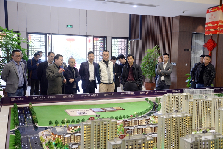 在揚期間,在江蘇華建董事長陸金龍陪同下,幾家單位領導一起考察了華建ART上院、華建雅筑、華城科技廣場等地產(chǎn)項目以及華建建筑設計院。