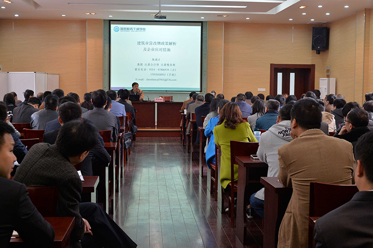 公司開展營改增試點業務培訓 時間:2016-04-11 3404 4月5日和6日,公司財務部和華建學院聯合組織的營改增試點業務培訓分別在揚州和北京開班。公司總部、北京和上海區域公司、駐揚分支機構及公司聯盟企業的主要負責人、經營和財務工作分管領導及有關人員共計210余人參加了培訓。 此次培訓特邀市國家稅務學院陳斌才教授主講。陳教授就建筑業營改增政策及企業應對措施作了專業分析和講解,并與參培人員進行了互動交流,使參培人員對建筑業營改增有關政策有了更深刻的理解和認識,達到了預期效果。 按照培訓工作計劃,本月中旬還將在深圳和海南兩地組織區域公司有關人員培訓。
