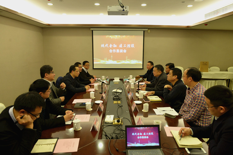 12月19日下午,現代金融集團董事長龔振志、總經理劉研率高管到公司洽談合作,公司董事長王宏、總會計師李長棟等參加活動。