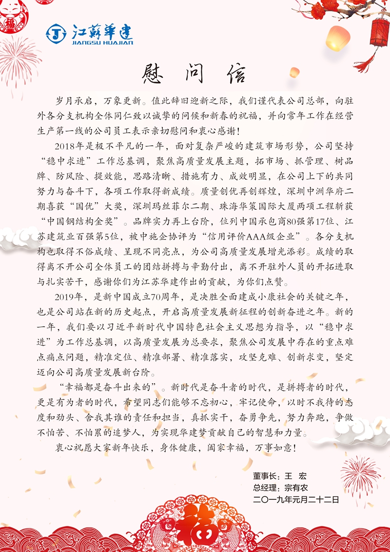 王宏董事長宗有農總經理給公司駐外員工的慰問信