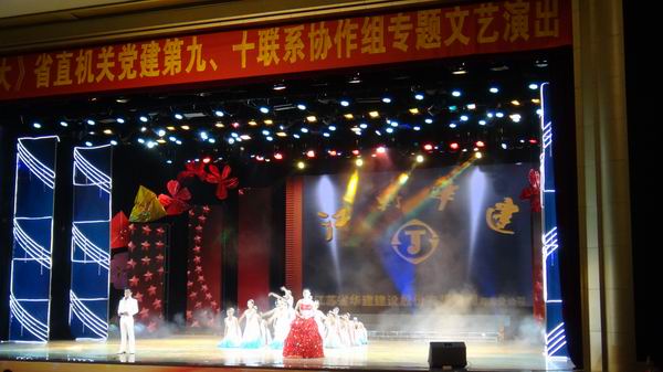 群團黨旗紅 喜迎十八大 時間:2012-08-12 4138 8月10日晚8:00,群團黨旗紅、喜迎十八大,海南省直機關黨建第九、十聯(lián)系協(xié)作組專題文藝演出在海南省工商職業(yè)學院禮堂隆重舉行,江蘇省駐瓊建工企業(yè)黨委作為第十聯(lián)系協(xié)作組成員單位參與承辦贊助了此次晚會,并精心組織和選送了大型歌伴舞節(jié)目《陽光路上》參加演出,受到省直機關工委領導、評委和廣大觀眾的一致好評,達到了良好效果。江蘇省駐瓊建工企業(yè)黨委書記王宏率廣大黨員、干部、職工共27人出席觀看了晚會。