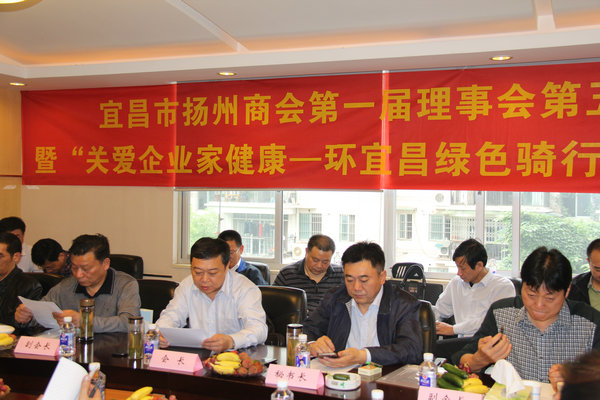 5月17日,宜昌市揚州商會一屆五次理事會暨“關愛企業家健康-環宜昌綠色騎行活動”啟動儀式在宜昌3E商務大廈召開。