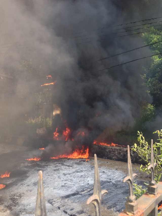 鄰居意外起火 項目部奮力撲救 時間:2014-07-30 4303 7月30日上午,珠海公司山海一品項目隔壁居民樓樓下堆放的裝修材料,因不明原因燃起大火,濃煙滾滾,火勢迅速蔓延,材料正上方的線纜部分起火。到項目現場檢查工作的公司副總經理盧達,立即組織項目部人員用工地現場滅火器等消防器材,在消防人員趕來之前撲滅大火,避免了重大財產損失。