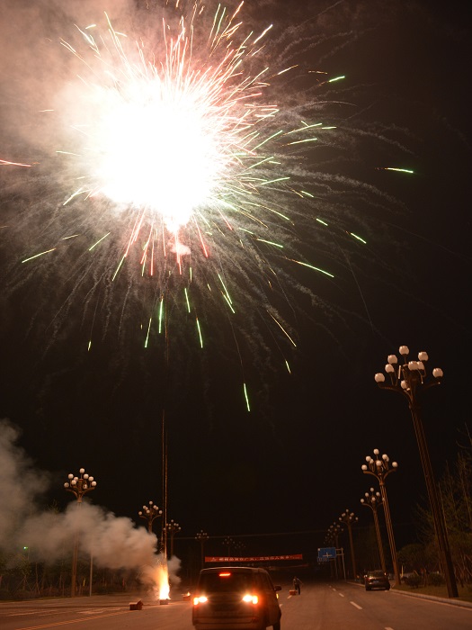 晚8點半,在蓮花大道及官盛春天1#樓現場同步進行了焰火燃放,慶祝蓮花大道下段順利竣工驗收及項目安置房首個樓棟主體結構封頂。