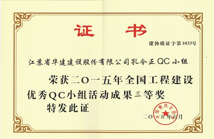 6月23—25日,由中國建筑業(yè)協會舉辦的“2015年全國工程建設優(yōu)秀QC小組活動成果交流會”在云南昆明舉行。珠海區(qū)域公司“江蘇省華建建設股份有限公司孔令正QC小組” 經江蘇省建筑行業(yè)協會推薦參加交流會,其成果《剝蝕丘陵地貌多形截面鋼筋混凝土灌注樁施工新方法》榮獲中建協QC成果三等獎。中國建筑業(yè)協會QC成果獎是建筑領域QC成果最高獎項,該獎項的獲得是對公司在技術質量管理工作方面的充分肯定。此外根據該項成果編寫的工法還獲得2014年度江蘇省省級工法。