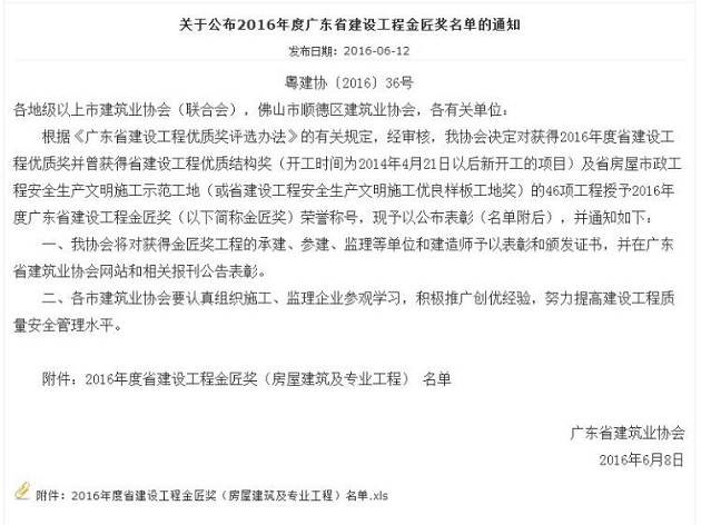 公司“陽光馬德里花園二期53-55棟”項目喜獲“廣東省建設(shè)工程金匠獎”