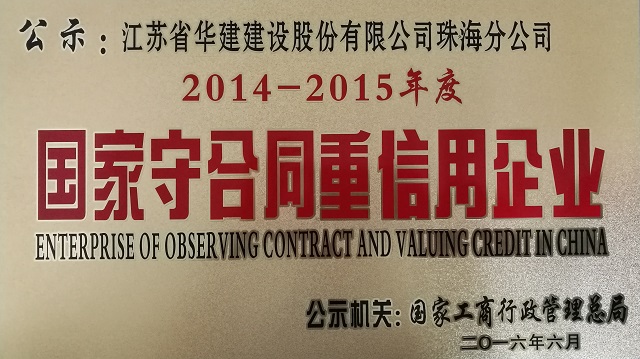 公司榮獲國家級(jí)“守合同重信用”企業(yè)稱號(hào) 時(shí)間:2016-08-02 2831 日前,國家工商行政管理總局向社會(huì)公示2014-2015年度“守合同重信用”企業(yè)名單,珠海公司榮獲國家級(jí)“守合同重信用”企業(yè)稱號(hào)。 珠海市共計(jì)13家企業(yè)被國家工商總局表彰為2014-2015年度“守合同重信用”企業(yè),其中新上榜企業(yè)4家。榮獲該稱號(hào)充分展現(xiàn)出江蘇華建在珠海市場守法履約的良好施工企業(yè)形象。