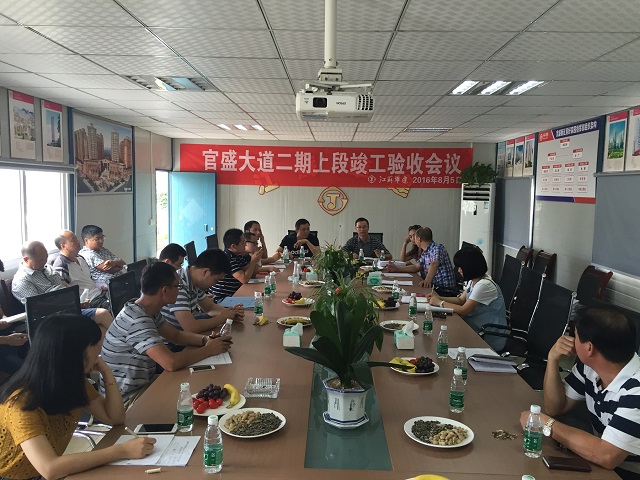 廣安項目官盛大道二期上段順利通過竣工驗收 時間:2016-08-05 2914 8月5日上午,廣安項目官盛大道二期上段順利通過竣工驗收。廣安區住建局副局長周春蘭主持驗收會議,經項目監理、設計、區住建及質監等單位和業主現場代表實測檢查、分別總結匯報后,一致同意工程驗收合格。 官盛大道二期是廣安官盛新區一條東西向城市主干道,道路全長1598米,標準路幅寬度46-60米,雙向六車道,設計時速60km/h。其中上段610米,作為一個單位工程單獨進行驗收。