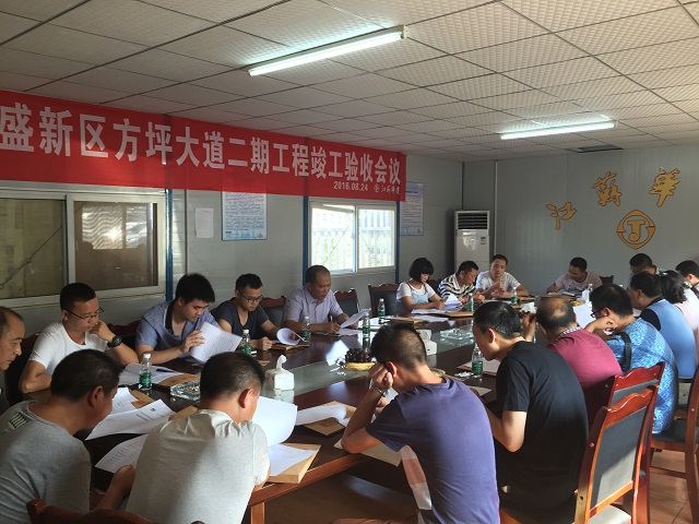 廣安項目方坪大道二期順利竣工驗收 時間:2016-08-26 4405 8月24日上午,廣安項目方坪大道二期順利竣工驗收,廣安區(qū)住建局副局長周春蘭主持驗收會議。本工程是官盛新區(qū)又一條東西向城市主干道,西接順于方坪大道一期交叉口,道路全長1.4km,標準路幅寬度40米,雙向六車道,設計時速60km。