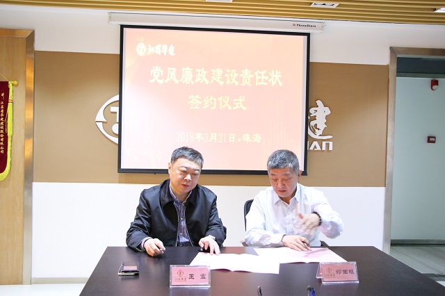 在珠期間,公司黨委書記王宏與珠海區(qū)域公司黨委書記繆國(guó)樞簽訂《黨風(fēng)廉政建設(shè)責(zé)任狀》。