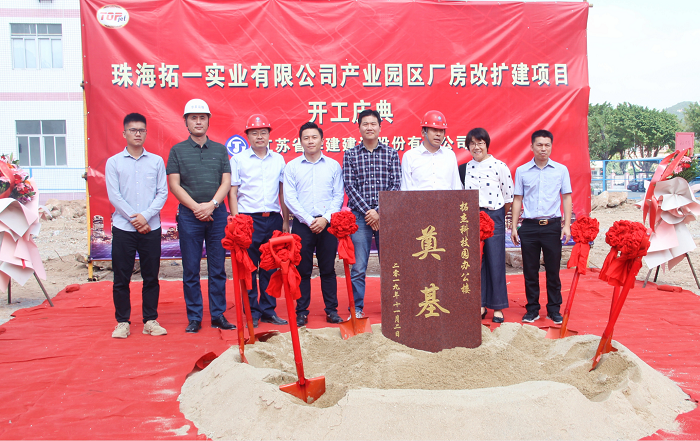 珠海拓一產業園區廠房改擴建項目舉行開工儀式 時間:2019-11-03 2486 11月2日,公司承建的珠海拓一實業有限公司產業園區廠房改擴建項目舉行隆重的開工儀式。 珠海拓一實業有限公司產業園區廠房改擴建項目,擴建項目建筑總面積為19088.9平方米,其中新一號廠房建筑面積為19050.68平方米(地上建筑面積為17019.75平方米,地下建筑面積為2030.93平方米);門衛室建筑面積為38.22平方米,工程暫定價約4600萬元,改建項目正在洽談中。