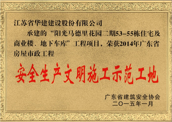 陽光馬德里二期工程榮獲2014年廣東省AA級安全文明標準化工地