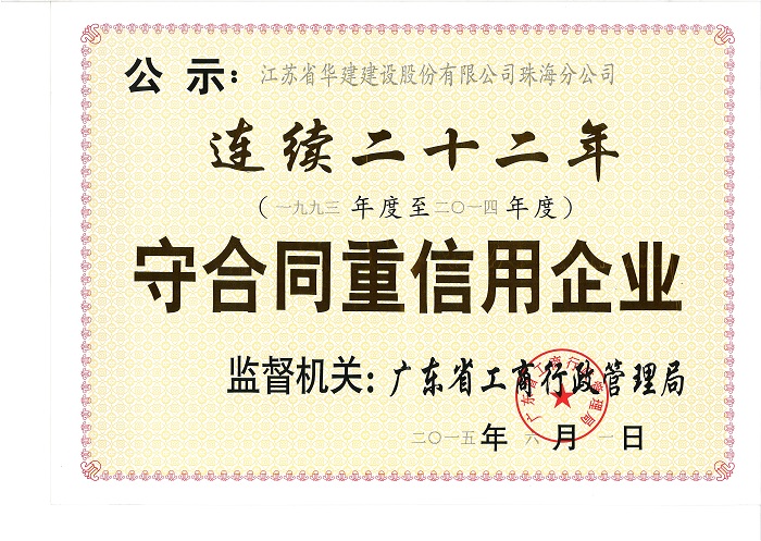 2015廣東省連續二十二年守合同重信用企業