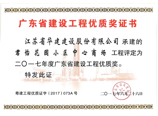 君怡花園小區中心商場 2017年度廣東省建設工程優質獎