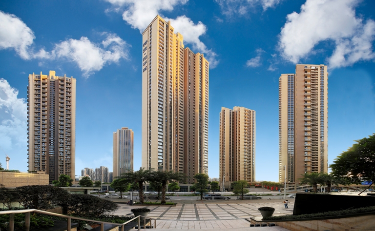中洲華府工程位于深圳市寶安區創業路與前進路交匯處,為功能完備的群體高層住宅小區,地下2層,...