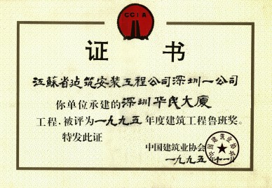 華民大廈竣工后先后獲:深圳市優(yōu)質(zhì)樣板(第一名)、江蘇省優(yōu)質(zhì)工程(金牌)、江蘇省揚(yáng)子杯、江蘇省名牌工程、中國建筑業(yè)最高魯班獎。
