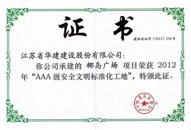椰島廣場(chǎng) 時(shí)間:2013-01-17 10956 椰島廣場(chǎng)項(xiàng)目位于海口市龍華路,該工程總建筑面積115562平方米,其中地下室建筑面積20388平方米,1#-4#樓地上建筑面積58689平方米,建筑高度93.35米,5#-6#樓地上建筑面積36485平方米,建筑高度96.45米。工程于2011年4月30日開工,工期為480天。 2012年10月,該工程被中建協(xié)評(píng)為2012年“AAA級(jí)安全文明標(biāo)準(zhǔn)化工地”。
