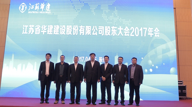 4月25日上午,江蘇華建股東大會2017年會在揚州召開。各股東代表和公司董事、監事出席會議,公司高級管理人員、各分支機構和總部各部室負責人、律師團律師列席會議,王宏董事長主持會議,揚州市副市長何金發出席會議并致辭。