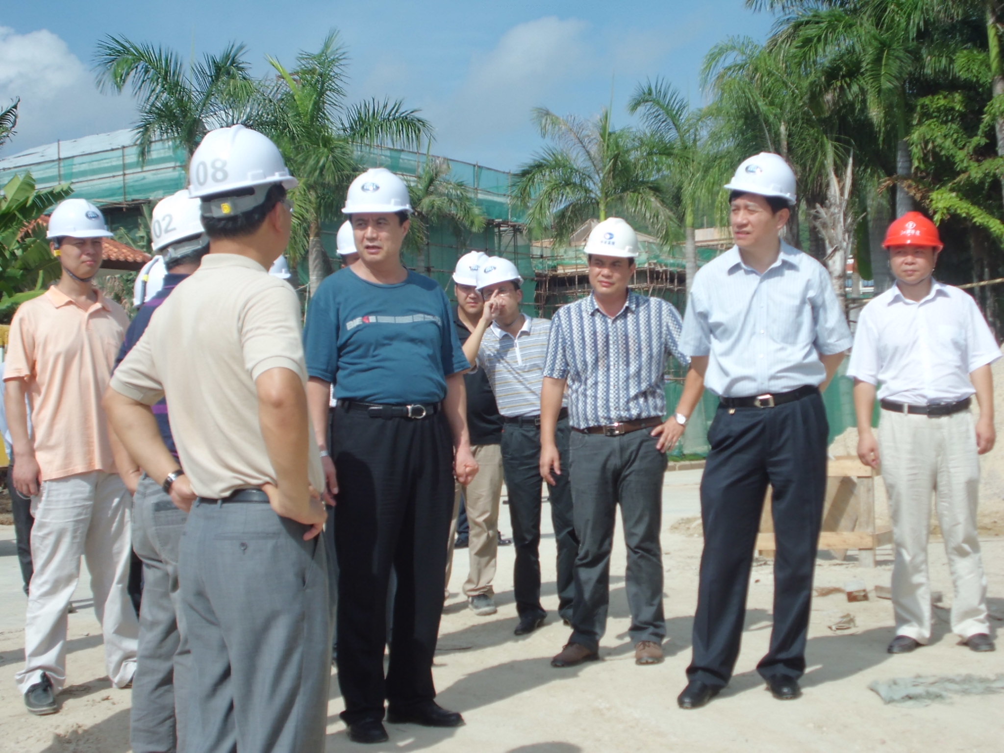海南省委書記羅保銘等視察海南公司 時間:2012-07-08 4439 6月6日下午,海南省委書記羅保銘,省委常委、副省長、三亞市委書記姜斯憲冒著高溫來到我公司承建的鹿回頭國賓館二期擴建項目現場視察慰問,公司副總經理、海南分公司總經理王宏陪同視察。羅書記對華建的施工進度和質量表示滿意,同時要求華建把工程當做作品來抓,按時交付代表海南水平的精品項目。羅書記高度評價江蘇華建的綜合實力,認為華建在海南承建了許多重點項目,是一支有實力、善打硬仗的隊伍。姜斯憲副省長希望華建在海南繼續保持良好發展勢頭,為江蘇建筑業爭光。