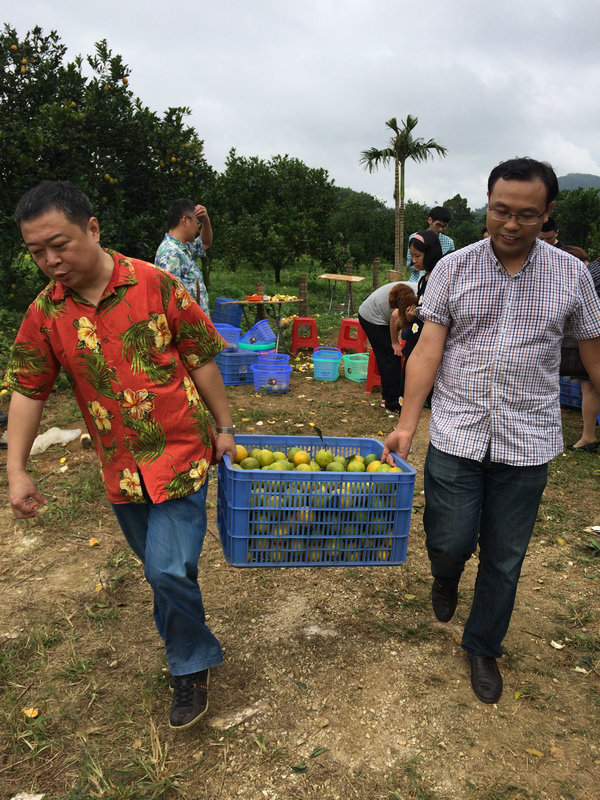 采摘,豐收的果實! 時間:2014-12-01 4292 南國椰風送秋意,海島瓊中結碩果。11月30日清晨,海南分公司組織綠橙采摘體驗活動,機關二十多名員工參加。一路細雨一路歌、一路顛簸一路笑,在瓊中鑫蘋果園里,一排排、一壟壟,漫山的果樹上結滿了綠橙,大家熱情高漲,興致盎然,親手體驗采摘的樂趣、勞動的快樂、收獲的喜悅和甘美。