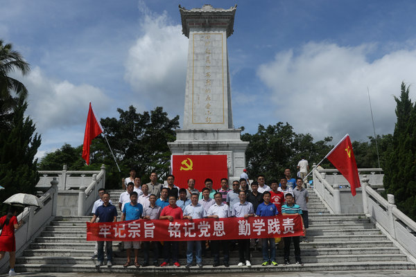 銘記黨恩,緬懷先烈。當日上午,全體黨員佩戴黨徽,參觀了海南省白沙起義革命根據地紀念園,在莊嚴肅穆的紀念碑前,大家向先烈虔誠致敬;在紀念館里,一幅幅老照片,一件件先烈們使用過革命工具是那么的生動,又是那么令人感動。