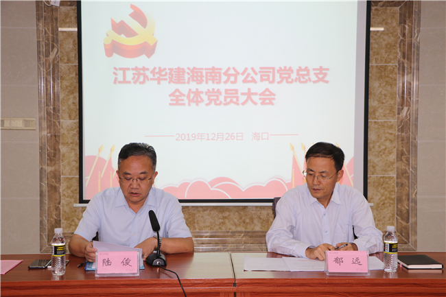 會議選舉產生的新一屆黨總支委員會由陸俊、郁遠、劉緒磊、魏春林、成衛東、梅崇兵、方舜高7名委員組成。新一屆黨總支委員會隨即召開了黨總支委員會議,選舉陸俊為黨總支書記,郁遠為黨總支副書記。新一屆黨總支委員們一致表示,新時期建筑業面臨了許多新挑戰、新問題,對企業黨建工作也提出了新的更高要求,新一屆黨總支委員會將在上級黨委的正確領導下,帶領全體黨員同志共同努力、不忘初心、繼續前行,不斷探索新時期黨建工作的新途徑、新方法,為實現江蘇華建海南分公司健康穩定發展,再上新臺階作出新的更大貢獻。